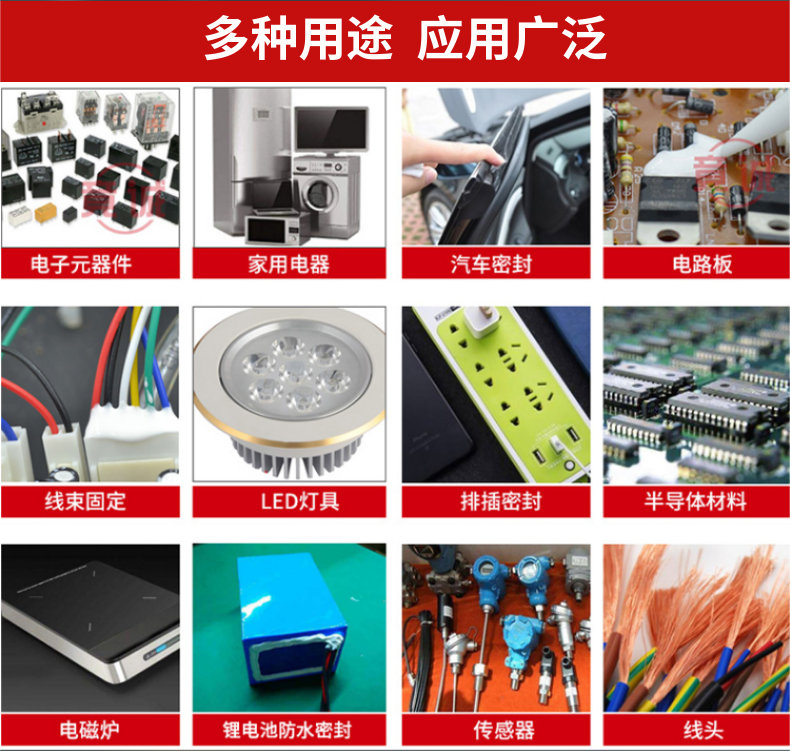 電子密封膠是廣泛的名稱,又稱電子電器產(chǎn)品的粘合劑。主要用于電子展產(chǎn)品的粘貼、密封、封印、涂層、結(jié)構(gòu)粘貼、工行涂層和smt貼片等。